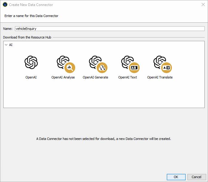 The Data Connector Dialog can either download a Data Connector from the Resource Hub or create a new one.