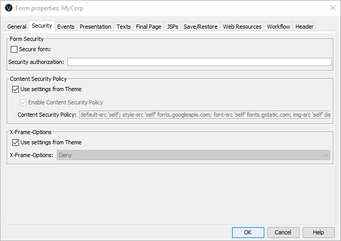 When checked, the following X-Frame-Options settings are taken from the Form section in the presentation template associated with the form. |