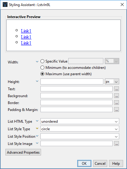 myList1.listStyleType = 'circle'; set myList1.containingListType