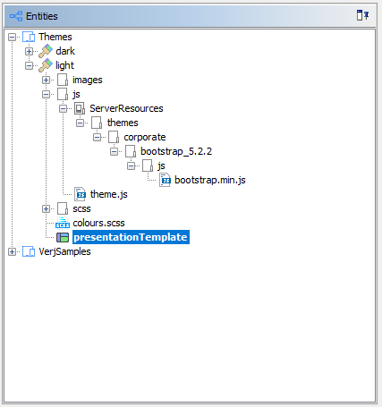 A Theme contains only one Presentation Template at the root level of the Theme. The Presentation Template cannot be renamed or moved or deleted and it is named presentationTemplate.