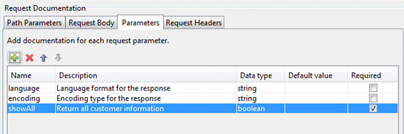 parameters table is automatically populated with the path parameters that are