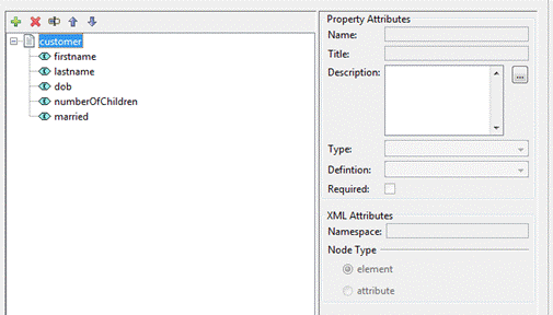 the definitions in a tree. To the right of the tree is the Data Node Properties panel to edit the individual data nodes.