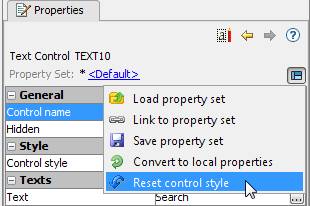 To reset all style for a control, click on the Property Set icon