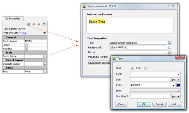 The styling assistants are intended to provide you with all the properties that you would commonly use to style any given control. However, this does not include every CSS property that could be applied. For the occasions when you want to achieve some advanced styling not provided by the styling assistants or you want to use class definitions from style sheets, an Advanced Properties button is supplied (see below).