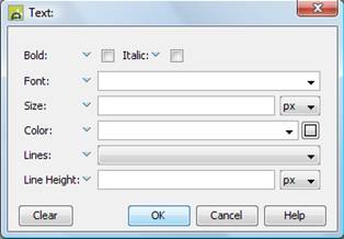 When properties are divided into groups, each group can be cleared by clicking the Clear button at the bottom left of each panel. This removes all properties in the group. E.g. for Text properties:
